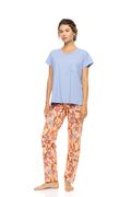 Γυναικεία Πυτζάμα Pink Label - TROPICAL FLOWER - Κοντομάνικη Με Μακρύ Παντελόνι - Cotton