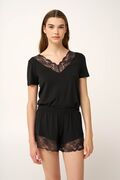 Vamp - Γυναικείο T-Shirt Micromodal με Δαντέλα - BLACK