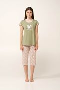 Vamp - Βαμβακερή Γυναικεία Πυτζάμα Κάπρι - GREEN TEA