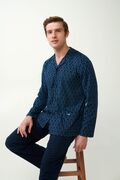 Vamp - Κουμπωτή Πυτζάμα S. Jersey με Γεωμετρικό Μοτίβο Κύβων - BLUE