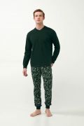 Vamp - Jersey Πυτζάμα με Λύκους και V Λαιμόκοψη - GREEN DEEP FOREST