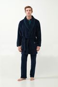 Vamp - Μονόχρωμη Σταυρωτή Fleece Ρόμπα - BLUE