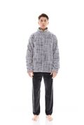 Ανδρική Ρόμπα Ζακέτα ULISSE - Γκρι - Καρό - Fleece - Με Φερμουάρ - Polyester