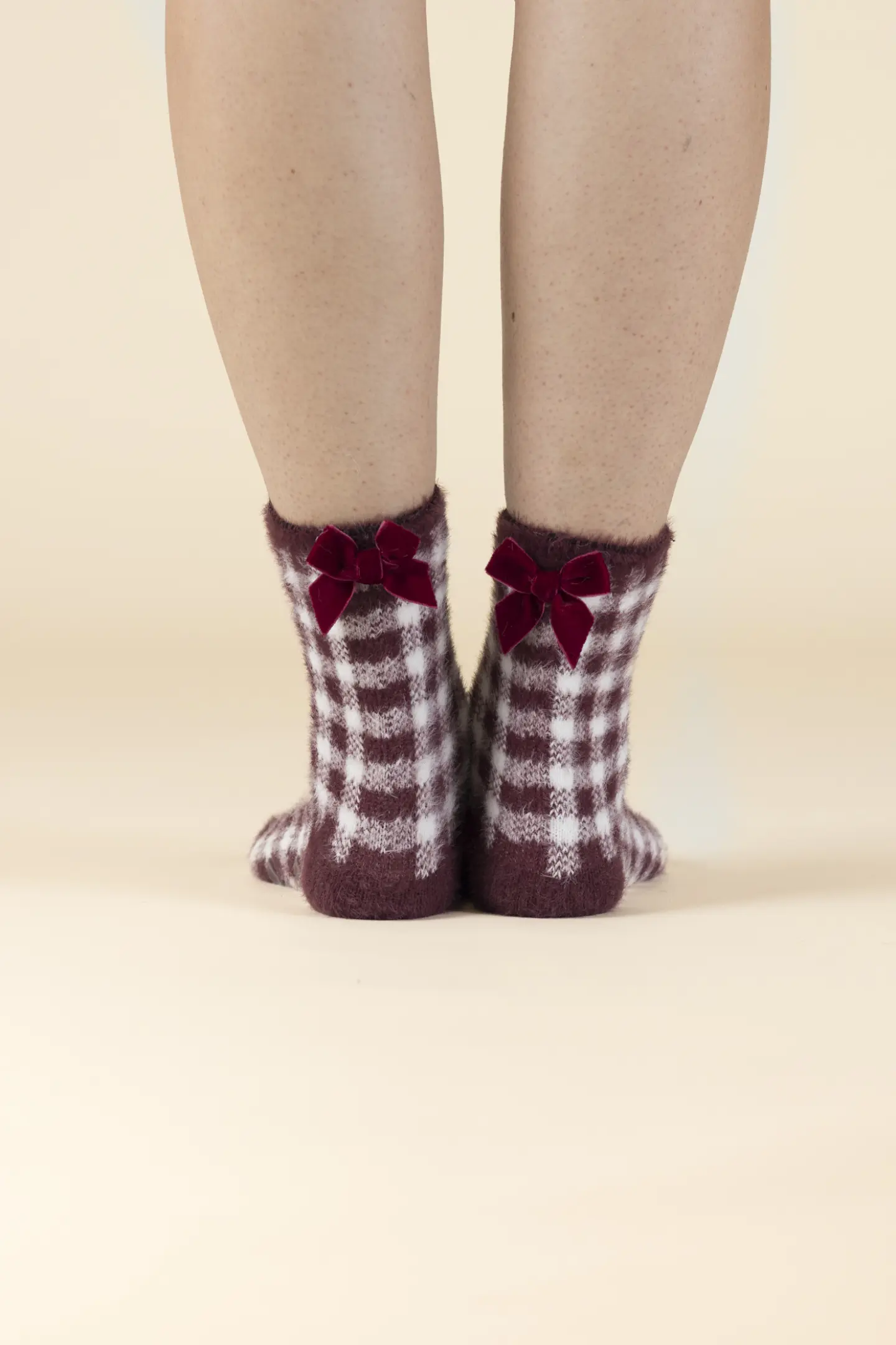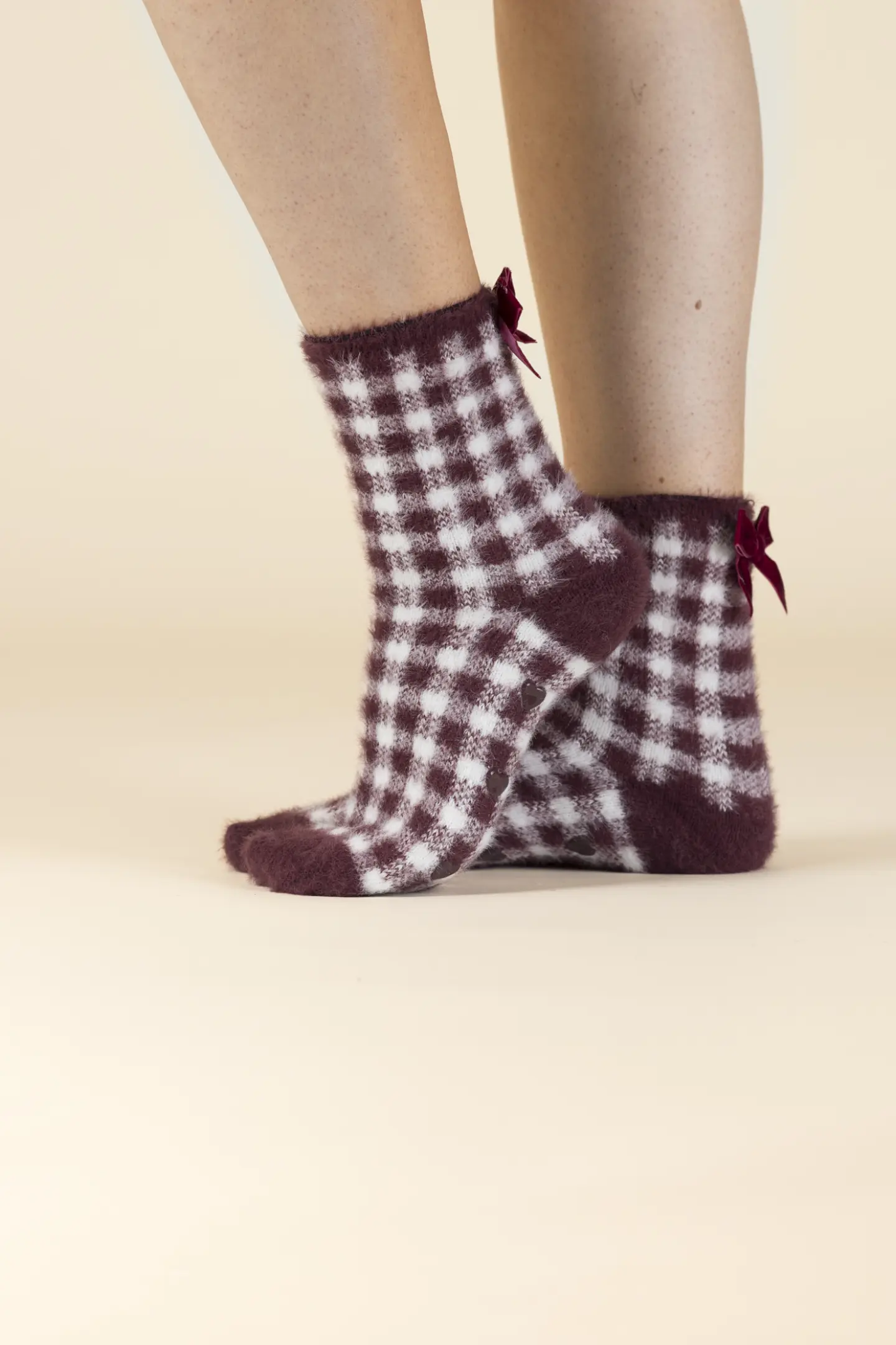 Γυναικείες κάλτσες σπιτιού Noidinotte καρό . Ζεστές κάλτσες Fleece με διακοσμητικό φιόγκο στο πάνω μέρος. Διαθέτουν αντιολισθικό πάτο.