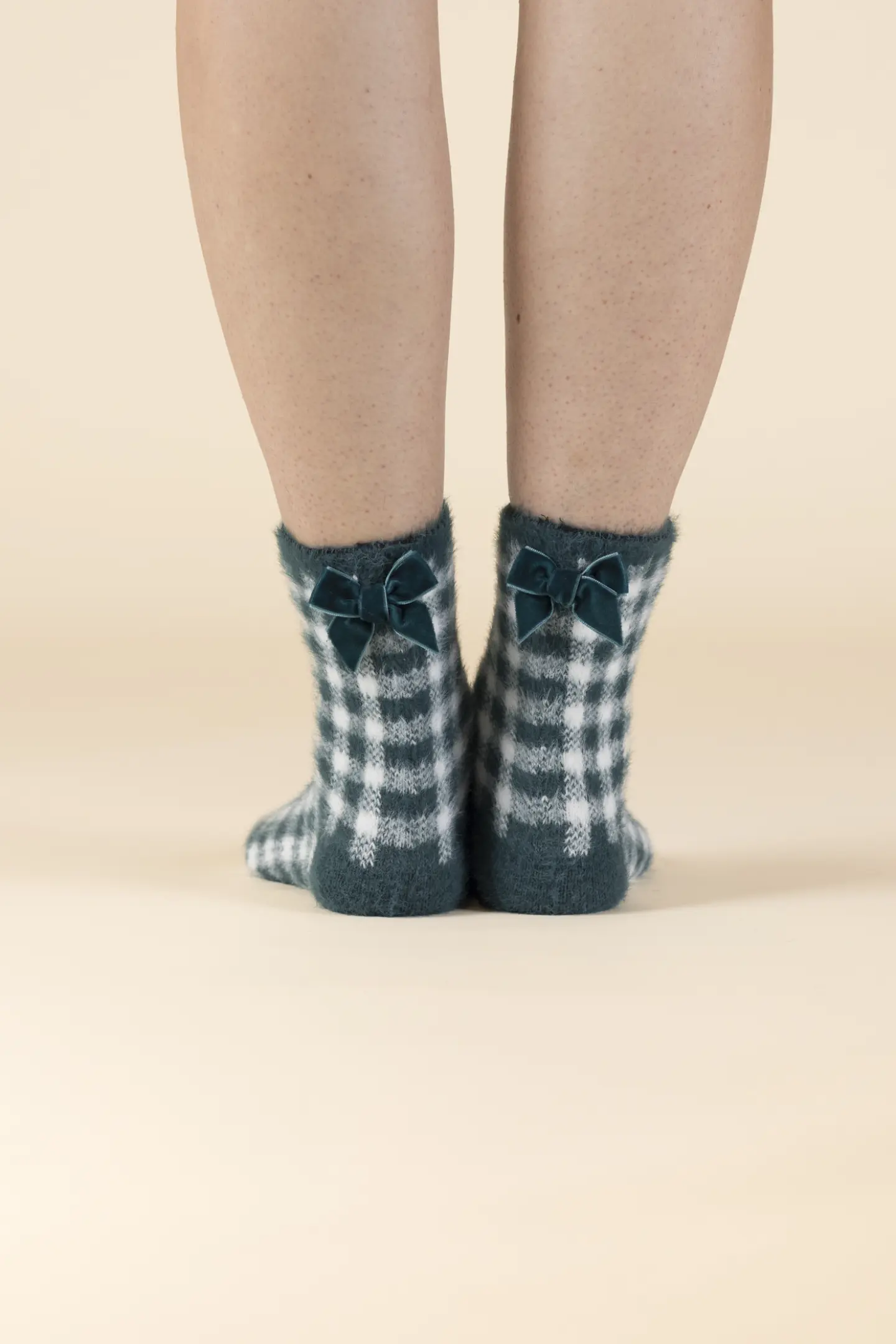 Γυναικείες κάλτσες σπιτιού Noidinotte καρό . Ζεστές κάλτσες Fleece με διακοσμητικό φιόγκο στο πάνω μέρος. Διαθέτουν αντιολισθικό πάτο.