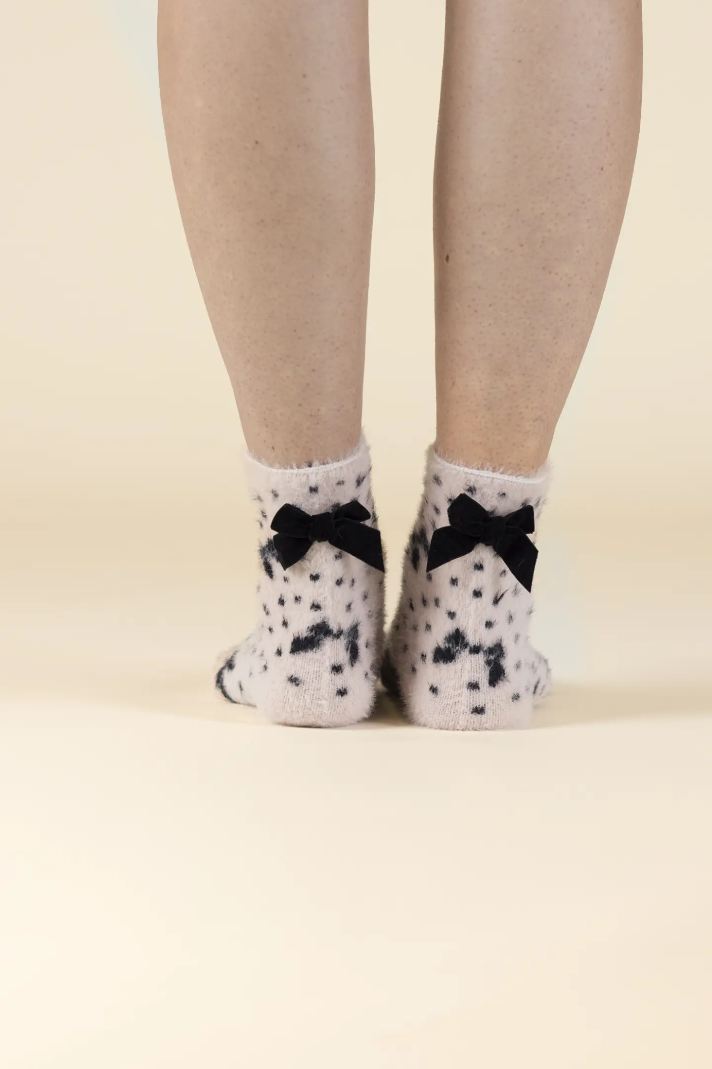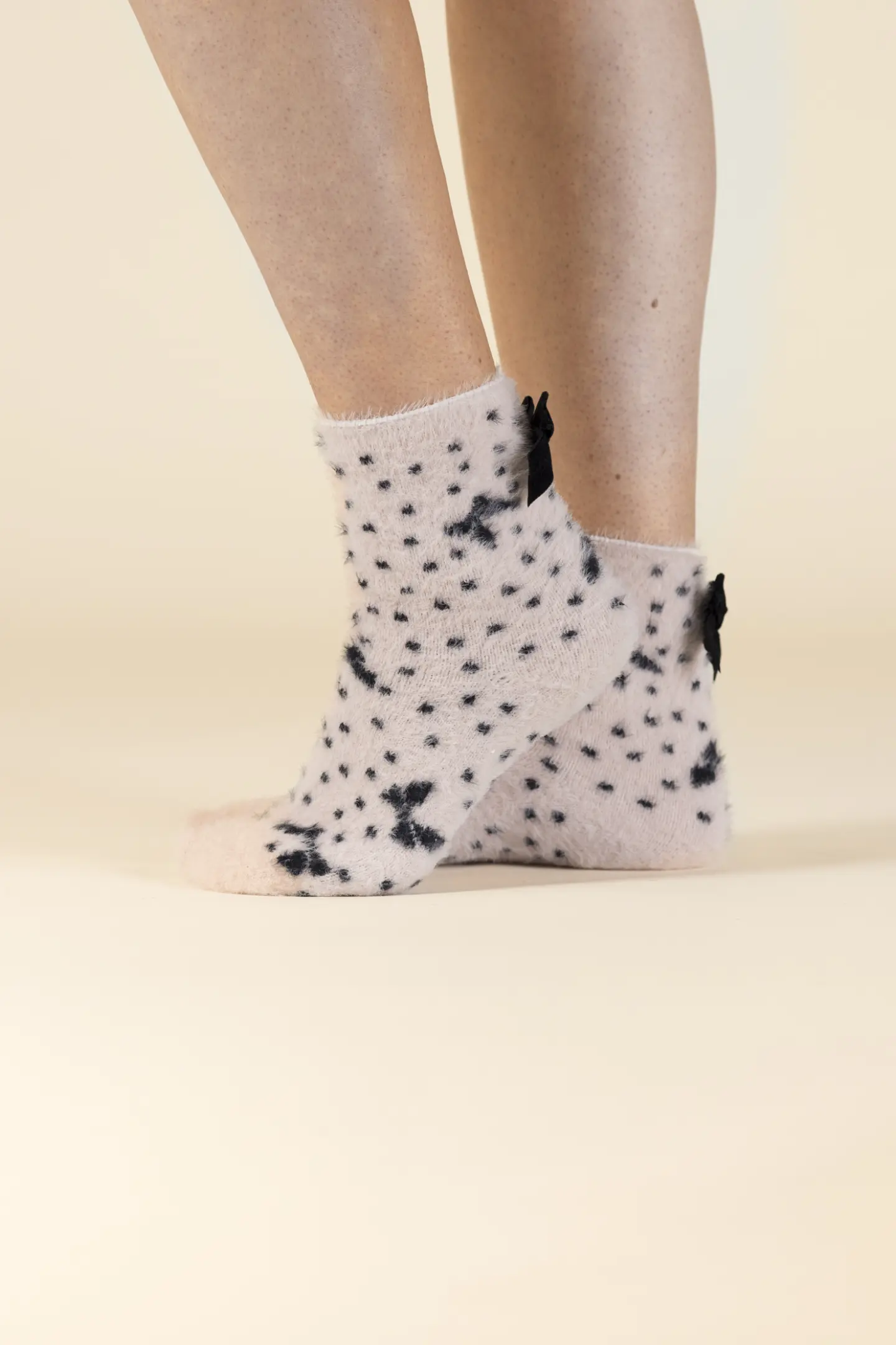 Γυναικείες κάλτσες σπιτιού Noidinotte ρόζ πουά . Ζεστές κάλτσες Fleece με διακοσμητικό φιόγκο στο πάνω μέρος. Διαθέτουν αντιολισθικό πάτο.