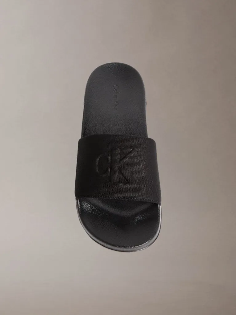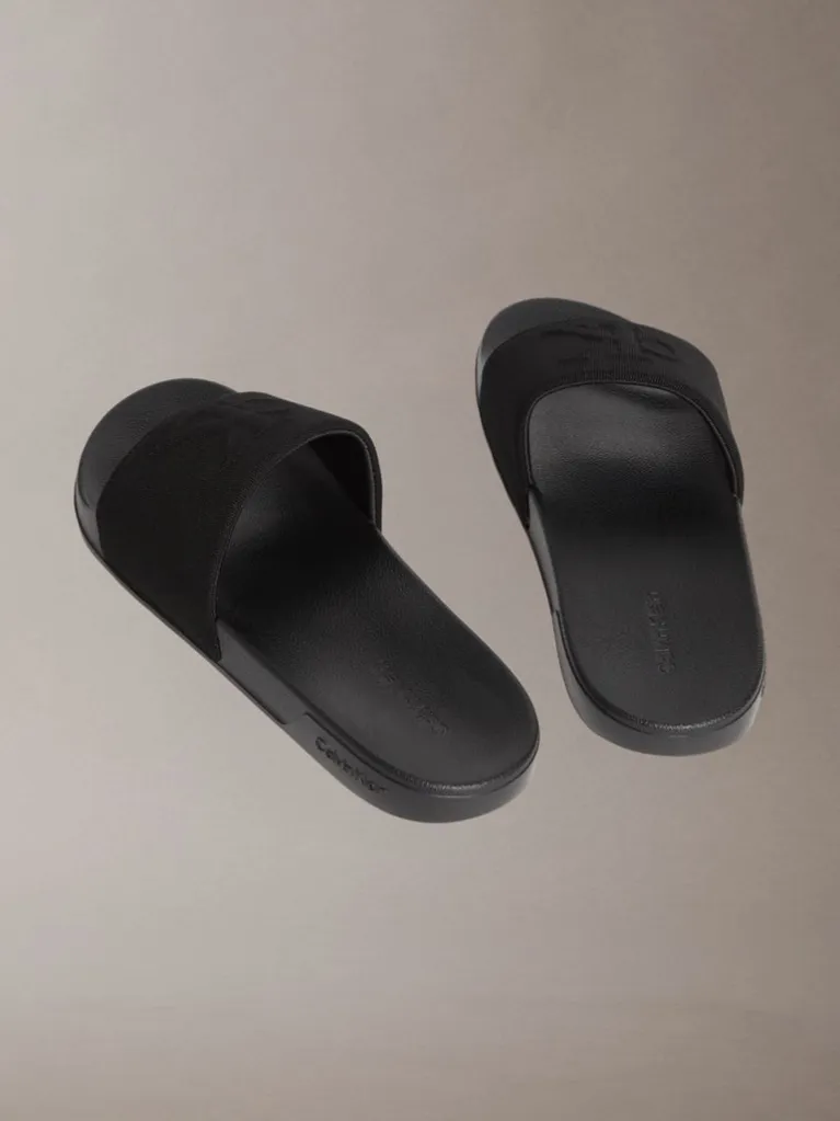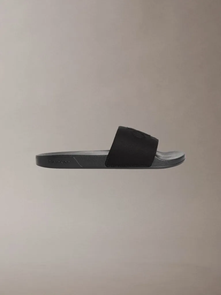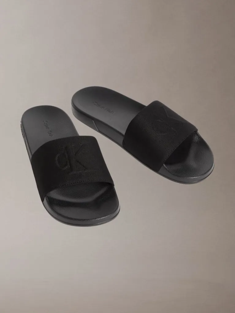 Παντόφλες ανδρικές Calvin Klein μαύρο  με το λογότυπο Calvin klein σε μαύρο χρώμα   , ειναι άνετες και αντιολιοσθιτικές ιδανικές για το σπίτι και την πισίνα.
