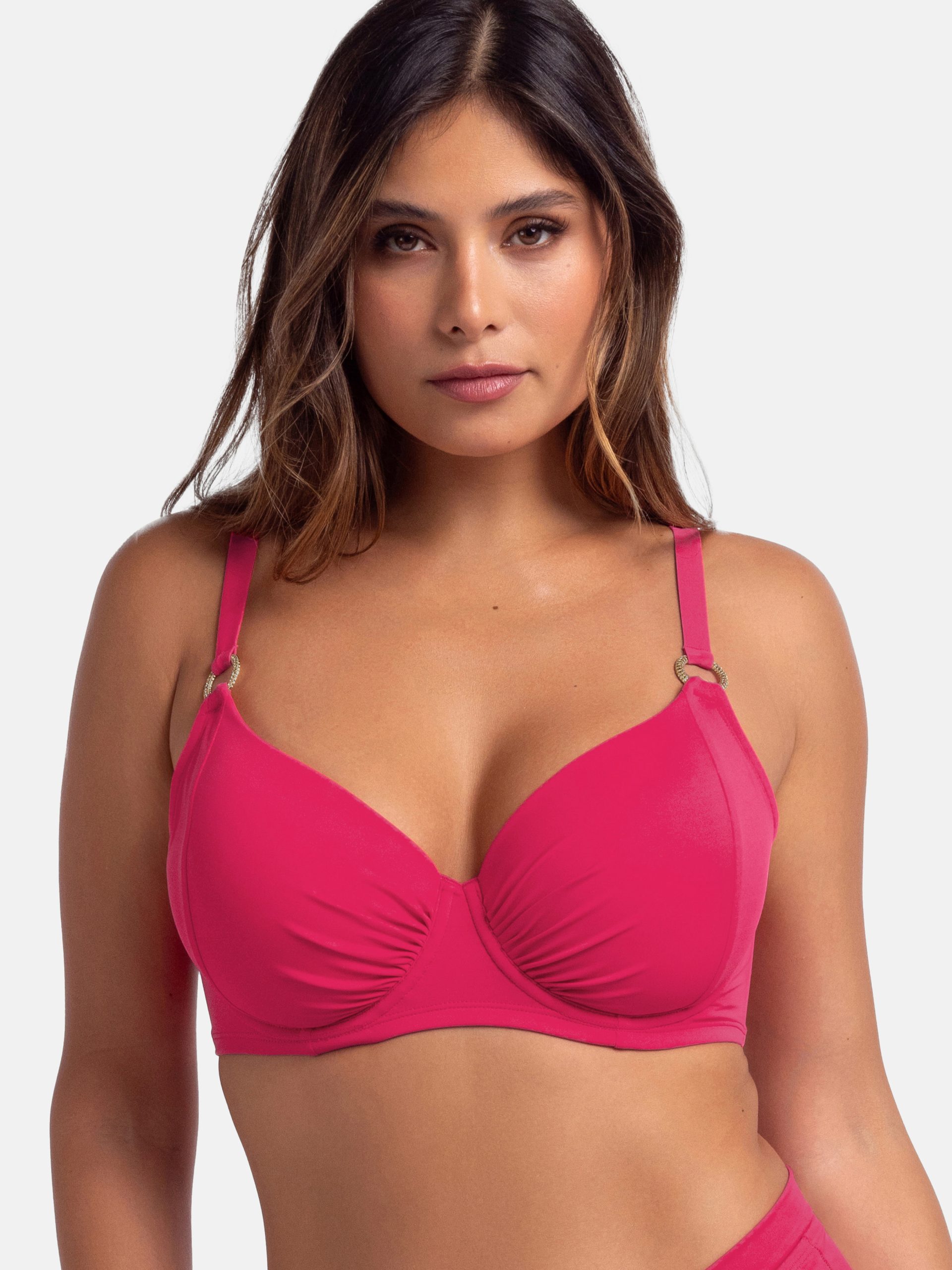 Γυναικείο σουτιέν μαγιό Dorina Mali ,Φουξια με σταθερό κούμπωμα και τιράντες με διακοσμητικά στοιχεία. Mix & Match μπικίνι σχεδιασμένα ειδικά για πλούσιο μπούστο, προσφέρει άνεση και περιμετρική στήριξη με ελαφριά ενίσχυση και μπανέλα.