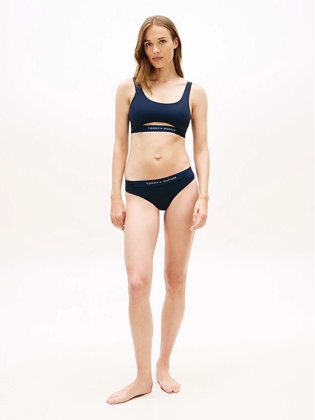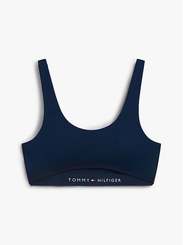 Ξεχωρίστε από το πλήθος στα ταξίδια σας ή στην πισίνα με αυτό το top bikini με το έντονο λογότυπο Tommy Hilfiger κάτω από το στήθος.