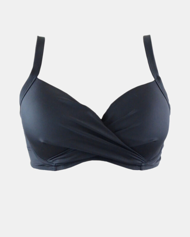 Γυναικείο μαγιό Rock Club, τοπ μονόχρωμο μαύρο, κομψό και σταθερό. Μπικίνι σουτιέν, σταθερό για μεγάλο και βαρύ στήθος με ελαφριά ενίσχυση και σταθερό, χρυσό κούμπωμα στην πλάτη. Προσφέρει μεγάλη υποστήριξη και άνεση.