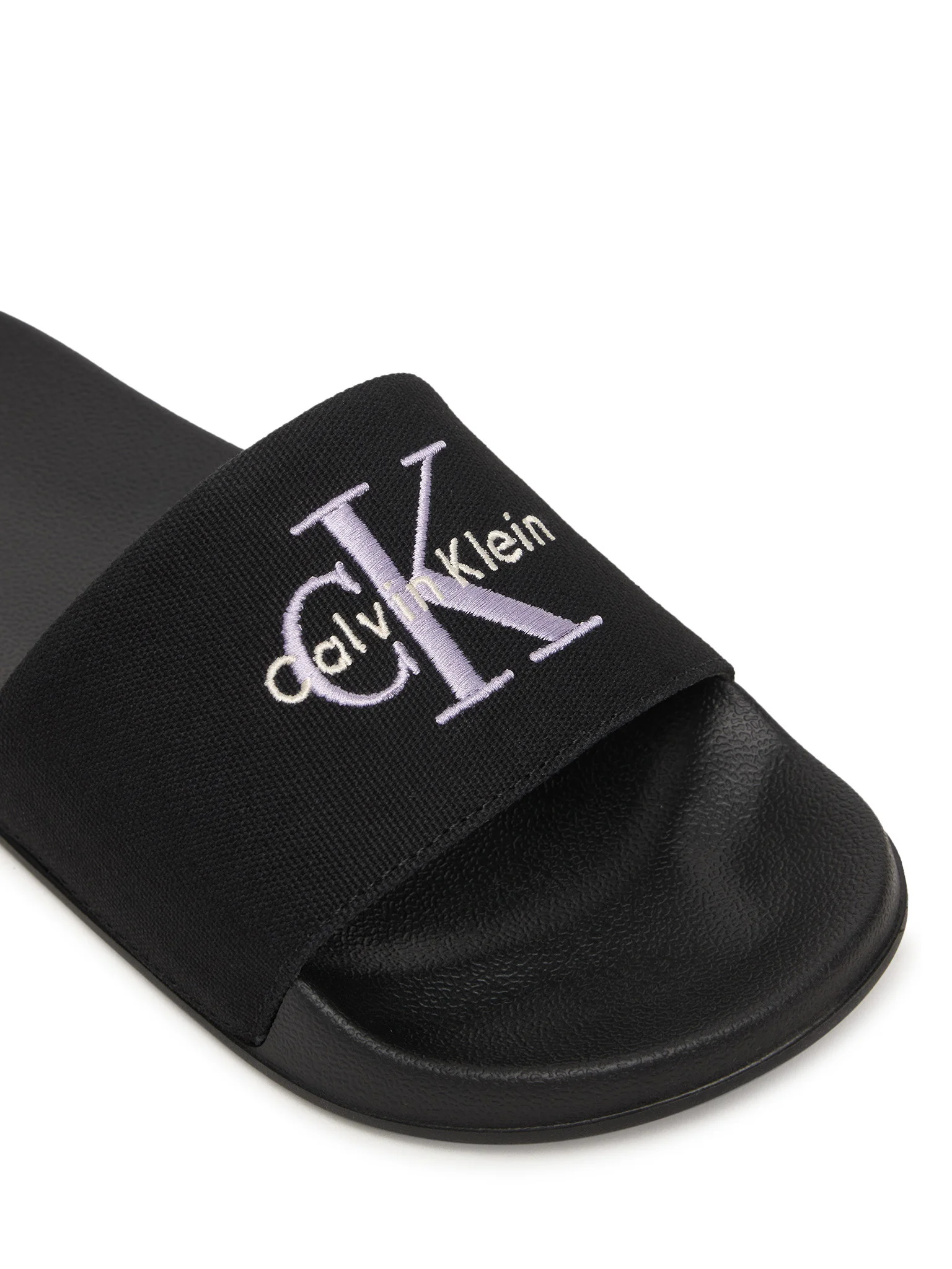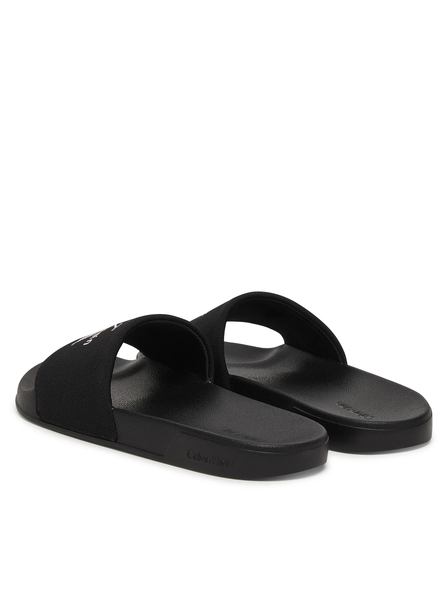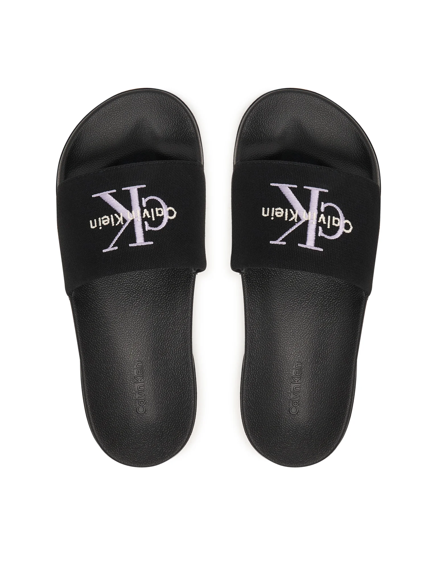 Παντόφλες  γυναικείες Calvin Klein μαύρες με το σήμα κατατεθέν της CK , ειναι άνετες και αντιολιοσθιτικές ιδανικές για το σπίτι και την πισίνα.