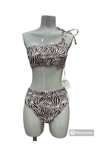 Γυναικείο μαγιό σετ Lida, με γεωμετρικό σχέδιο και κρίκο στην τιράντα. Μπικίνι σετ Crop top με έναν ώμο Hot ψηλόμεσο bikini σλιπ, κανονικό.