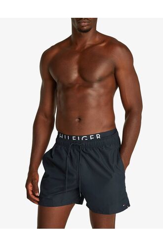 Ανδρικό μαγιό Tommy Hilfiger με κορδόνι στην μέση που προσφέρει σταθερότητα και τσέπες στο πλάι και πίσω. Μπλέ μαγιό βερμούδα ριγέ με τα Logo Tommy Hilfiger στο πλάι και το λάστιχο.