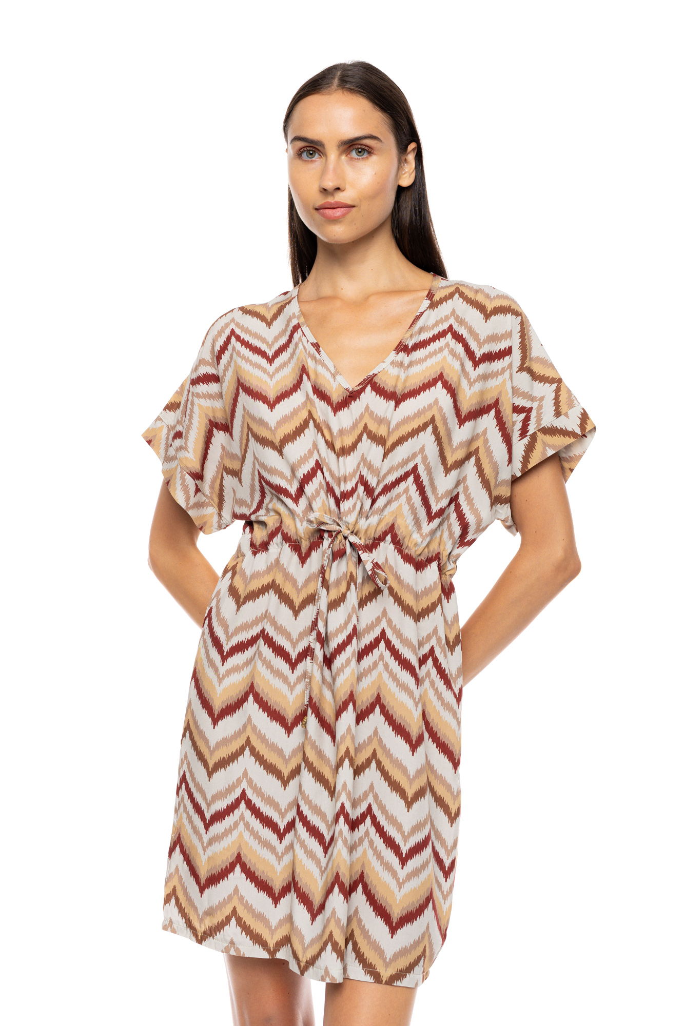 Γυναικείο Beachdress Pink Label κοντό σε άνετη γραμμή . Φόρεμα παραλίας με άνοιγμα V στο στήθος, 100% viscose.