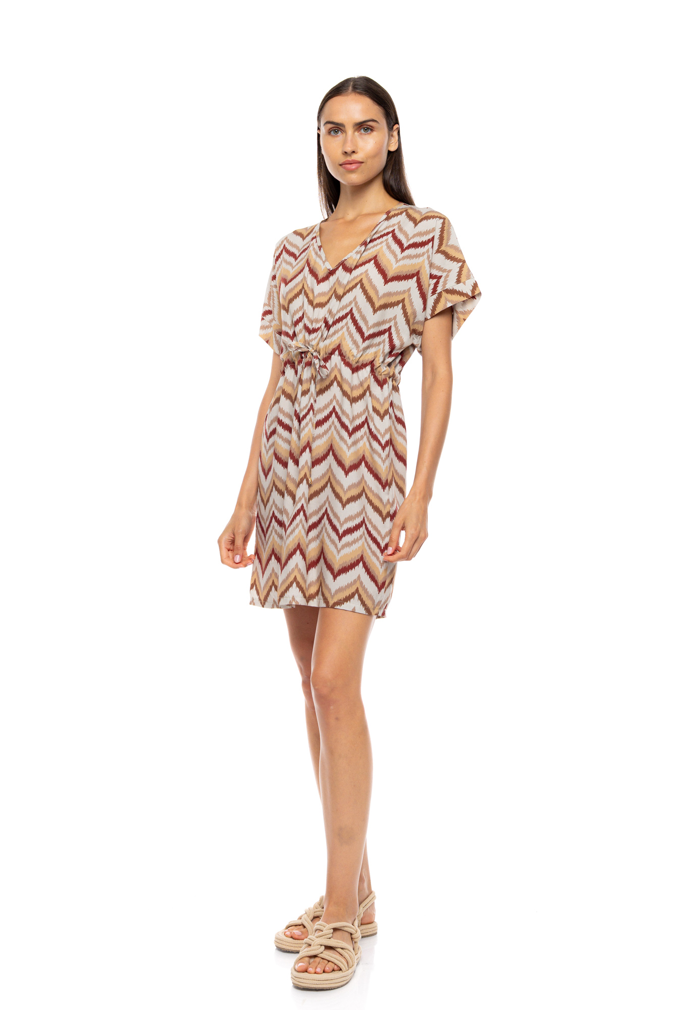 Γυναικείο Beachdress Pink Label κοντό σε άνετη γραμμή . Φόρεμα παραλίας με άνοιγμα V στο στήθος, 100% viscose.