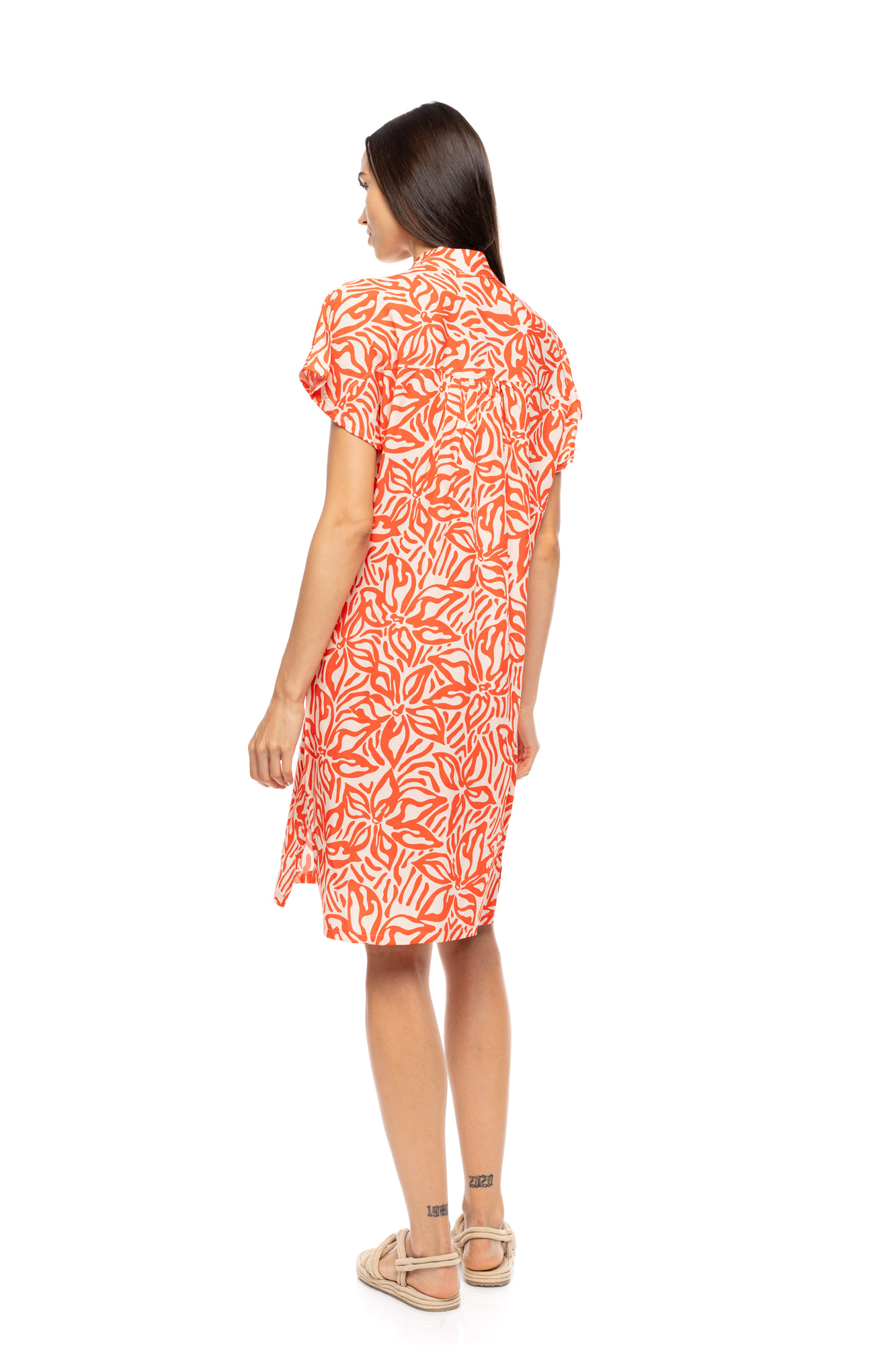 Γυναικείο Beachdress Pink Label - CORAL FLOWER - Κοντομάνικο - Με Πατιλέτα - Viscose