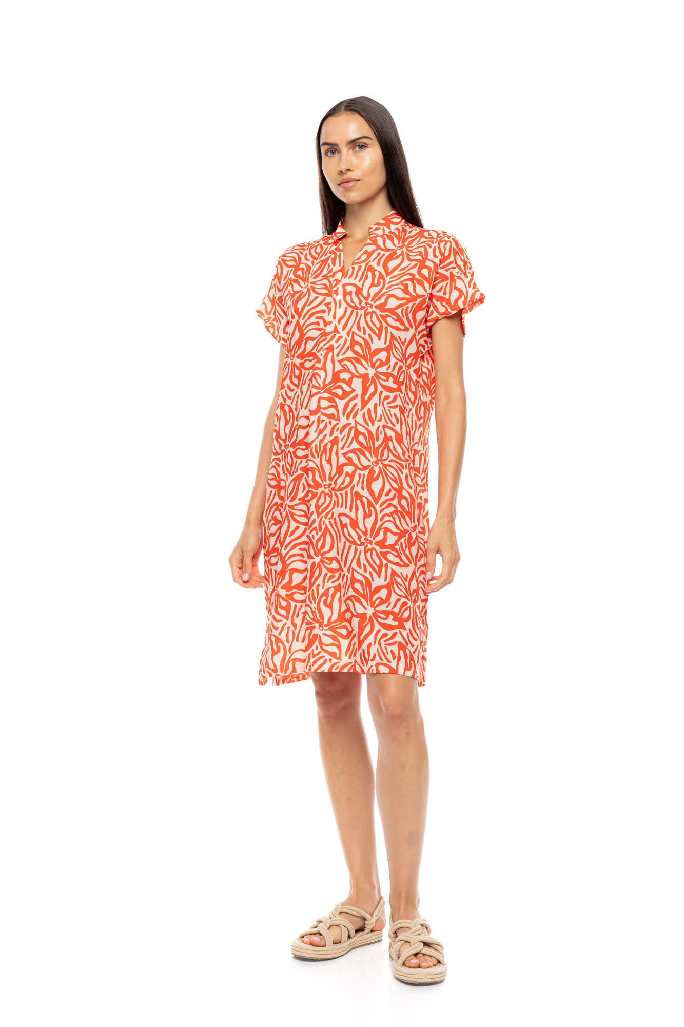 Γυναικείο Beachdress Pink Label - CORAL FLOWER - Κοντομάνικο - Με Πατιλέτα - Viscose