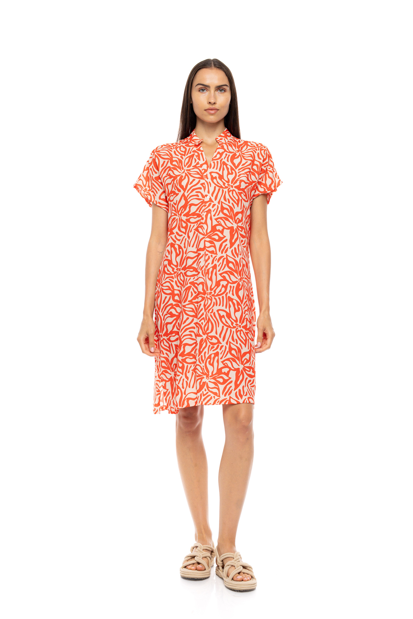 Γυναικείο Beachdress Pink Label - CORAL FLOWER - Κοντομάνικο - Με Πατιλέτα - Viscose