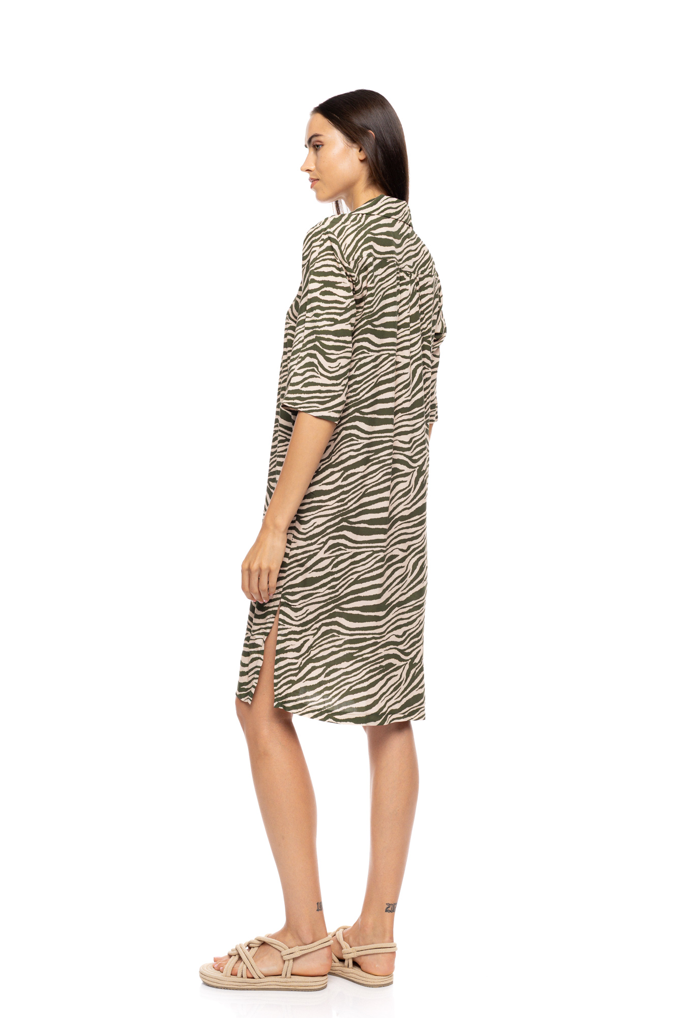 Γυναικείο Beachdress Pink Label - BILBAO GREEN LEO - 3/4 Μανίκι - Viscose
