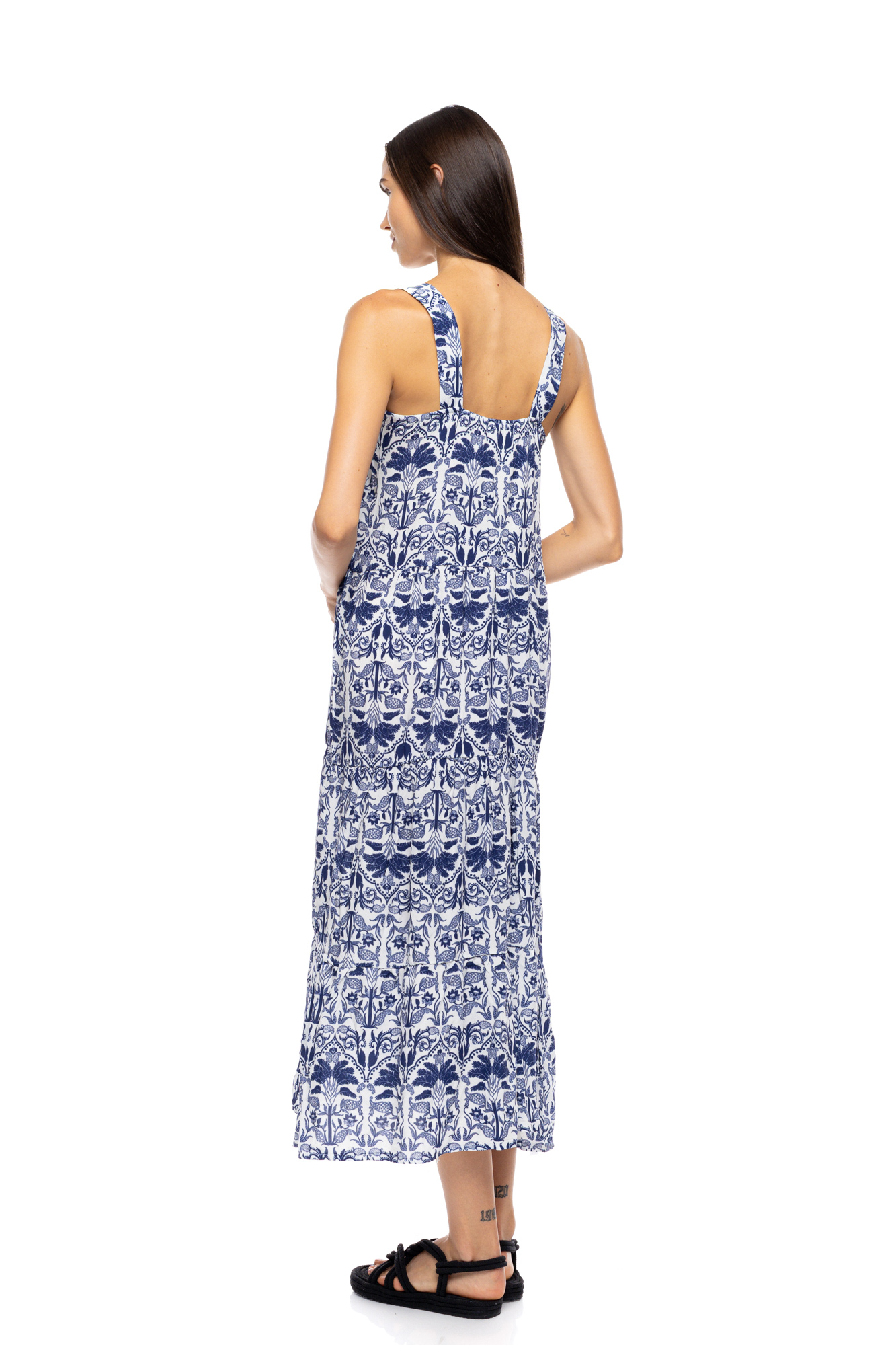 Γυναικείο Beachdress Pink Label - BLUE TROPICAL - Maxi Με Φαρδιά Τιράντα - Viscose