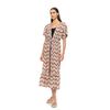 Γυναικείο Beachwear με κοντό μανίκι maxi ,  εμπριμέ  με κορδόνι στη μέση για να ανδεικνύει τη σιλουέτα από δροσερό ύφασμα viscose.
