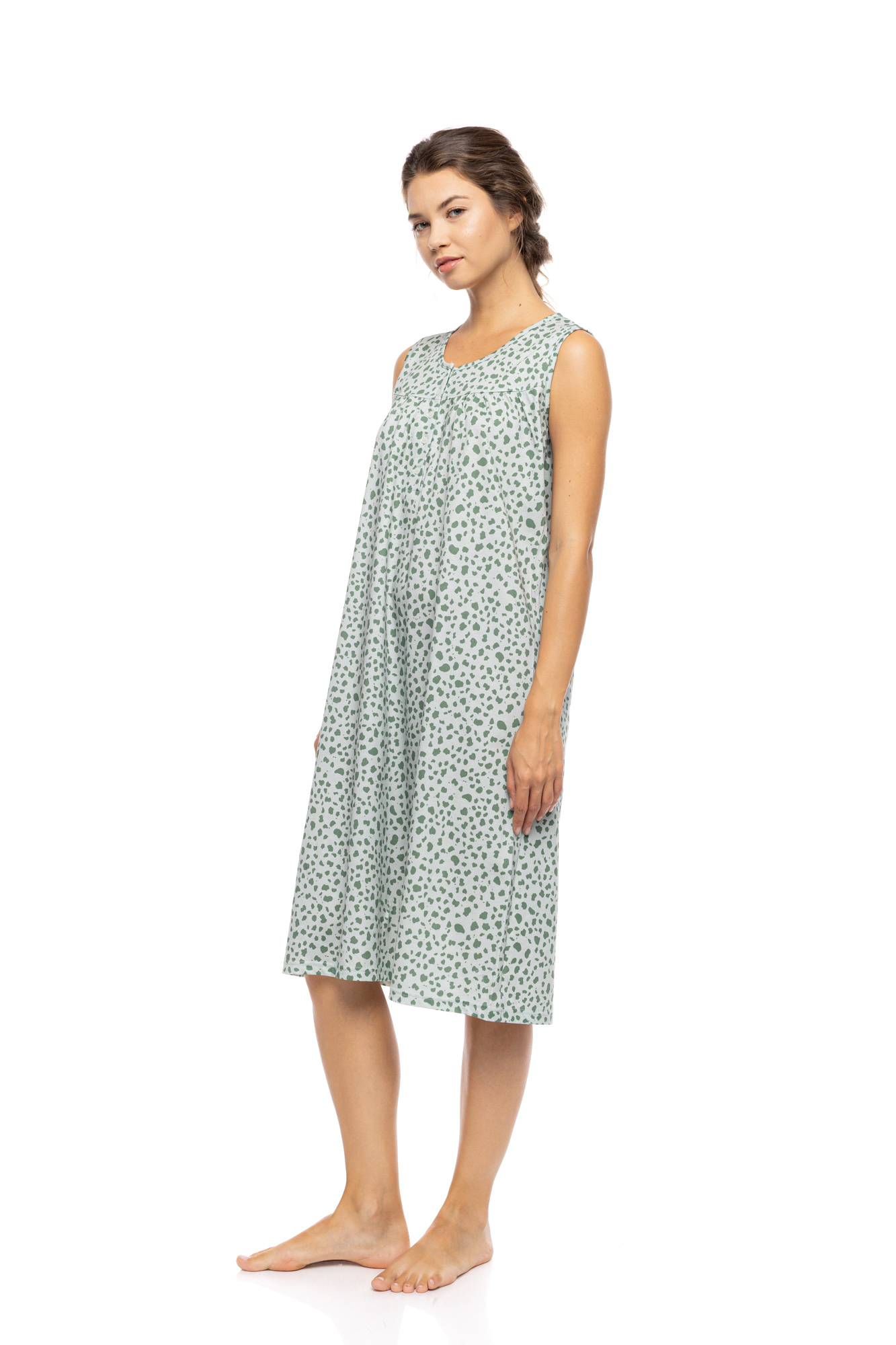 Γυναικείο καλοκαιρινό νυχτικό Pink Label. Κομψό νυχτικό Αμάνικο - πατιλέτα σε ίσια γραμμή με κλασσική λαιμόκοψη. Το απόλυτο δροσερό βαμβακερό υφάσμα σε συνδυασμό με το γήινο χρώμα Jade  Leo   το καθιστά ιδανίκο για όλο το καλοκαίρι.