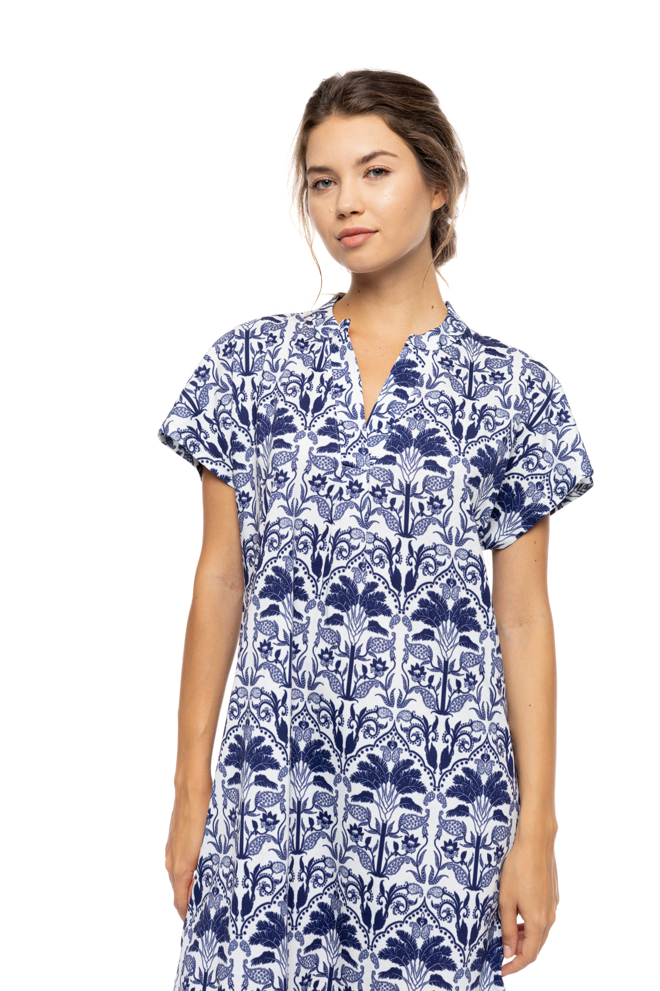 Γυναικείο καλοκαιρινό νυχτικό Pink Label. Κομψό νυχτικό Κοντό Μανίκι - σεμιζιέ σε ίσια γραμμή και μαο γιακά. Το απόλυτο δροσερό βαμβακερό υφάσμα σε συνδυασμό με τα γήινα χρώματα το καθιστά ιδανίκο για όλο το καλοκαίρι.