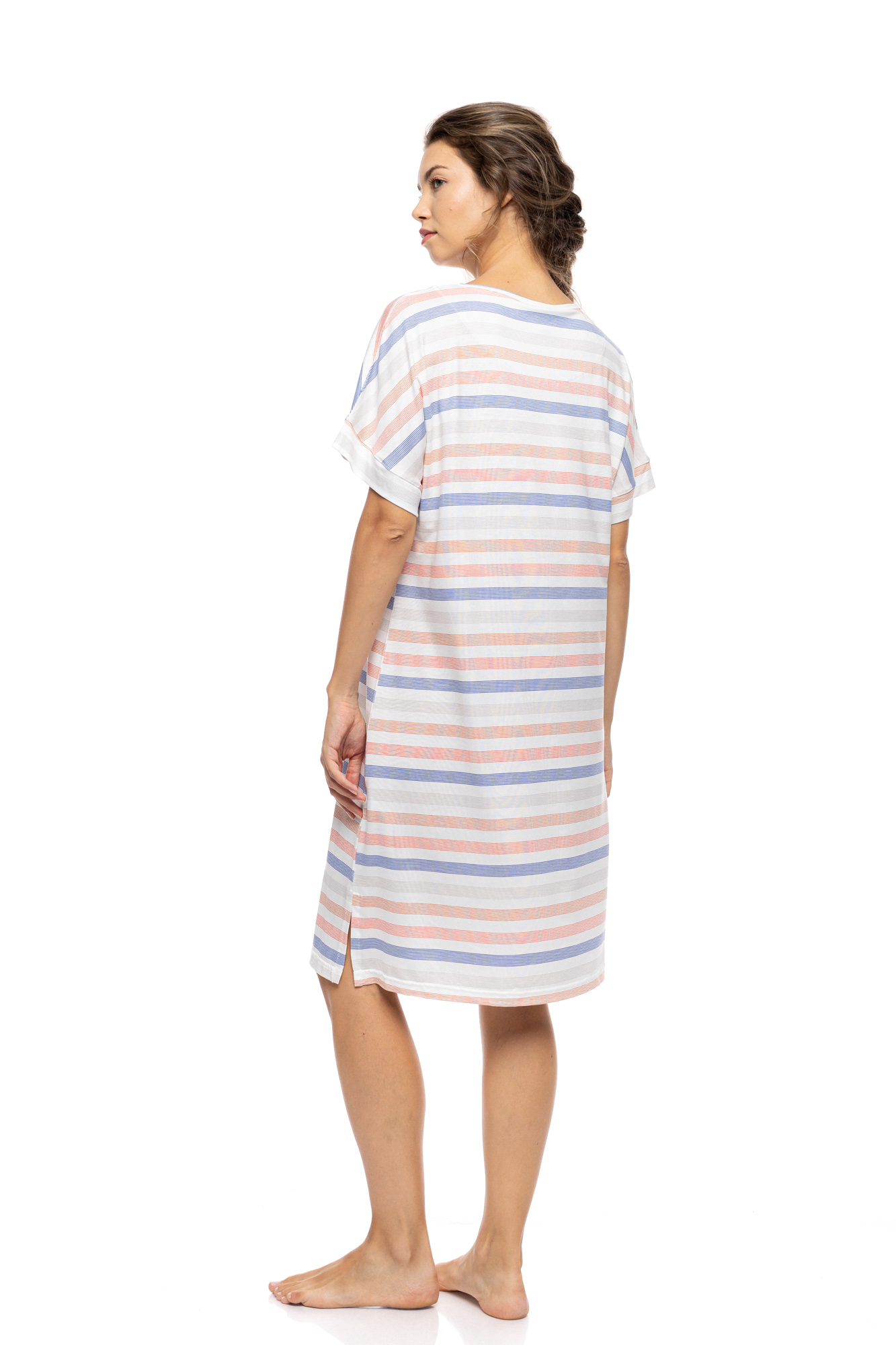 Γυναικείο Νυχτικό Pink Label - SUNSET STRIPE - Kοντομάνικο - V-Neck - Cotton