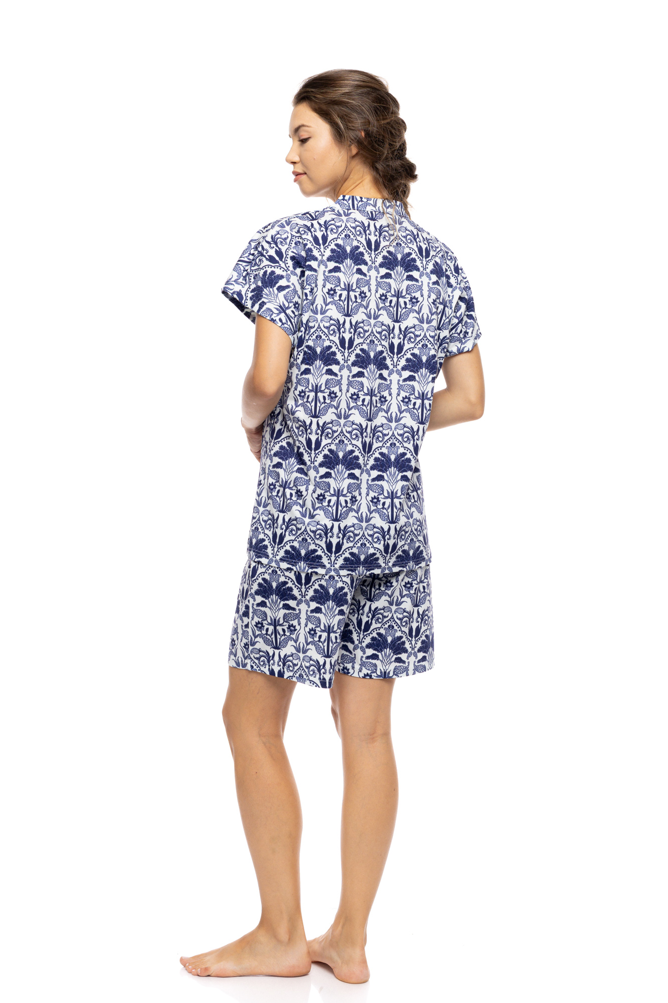 Γυναικεία Πυτζάμα Pink Label - Σορτς - BLUE TROPICAL- Κοντομάνικη - V-Neck - Cotton