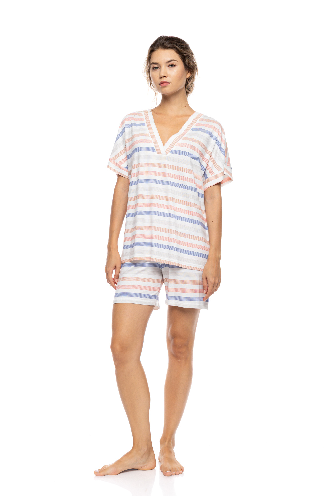 Γυναικεία Πυτζάμα Pink Label - SUNSET STRIPE - Κοντομάνικη - V-Neck - Σορτς - Cotton