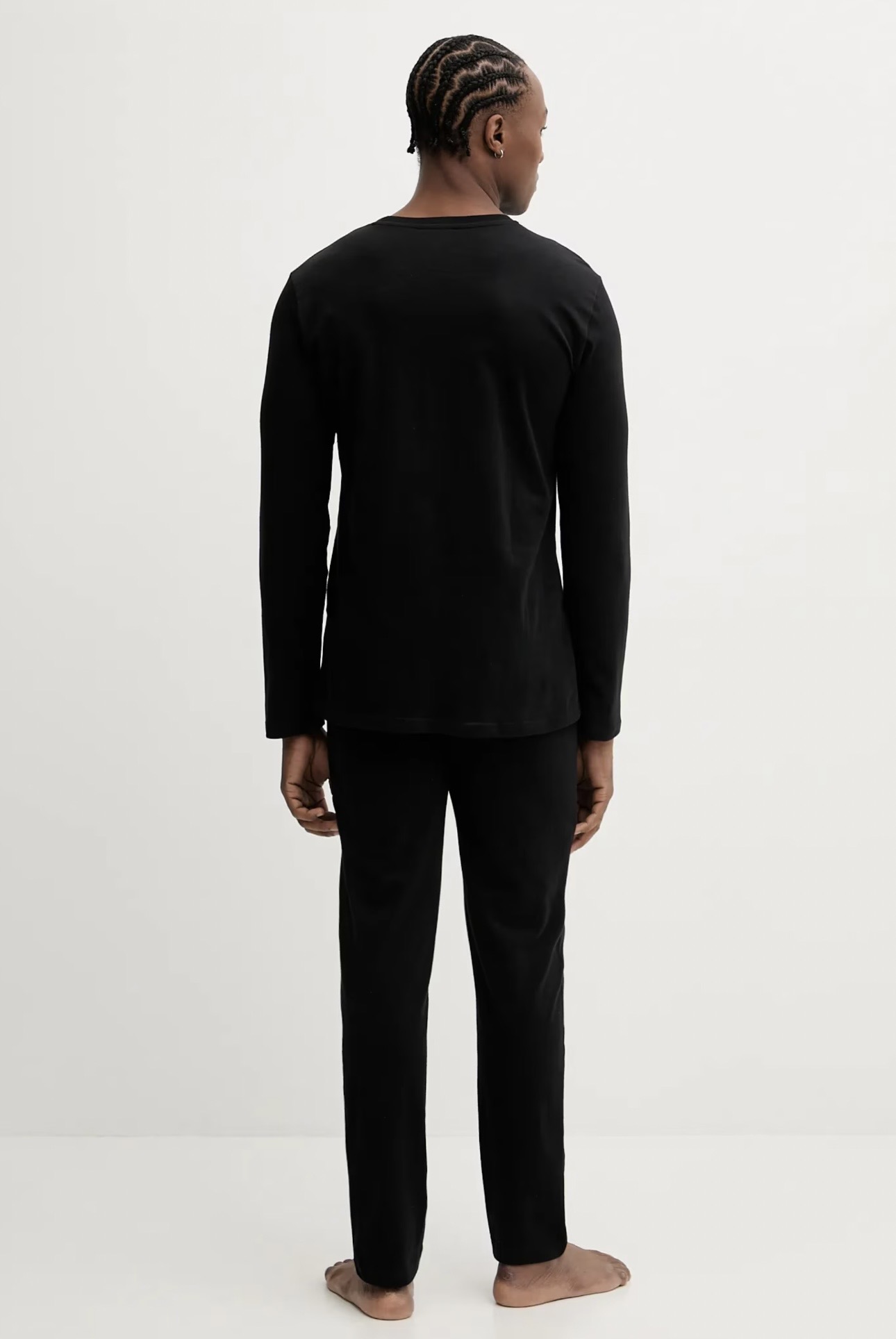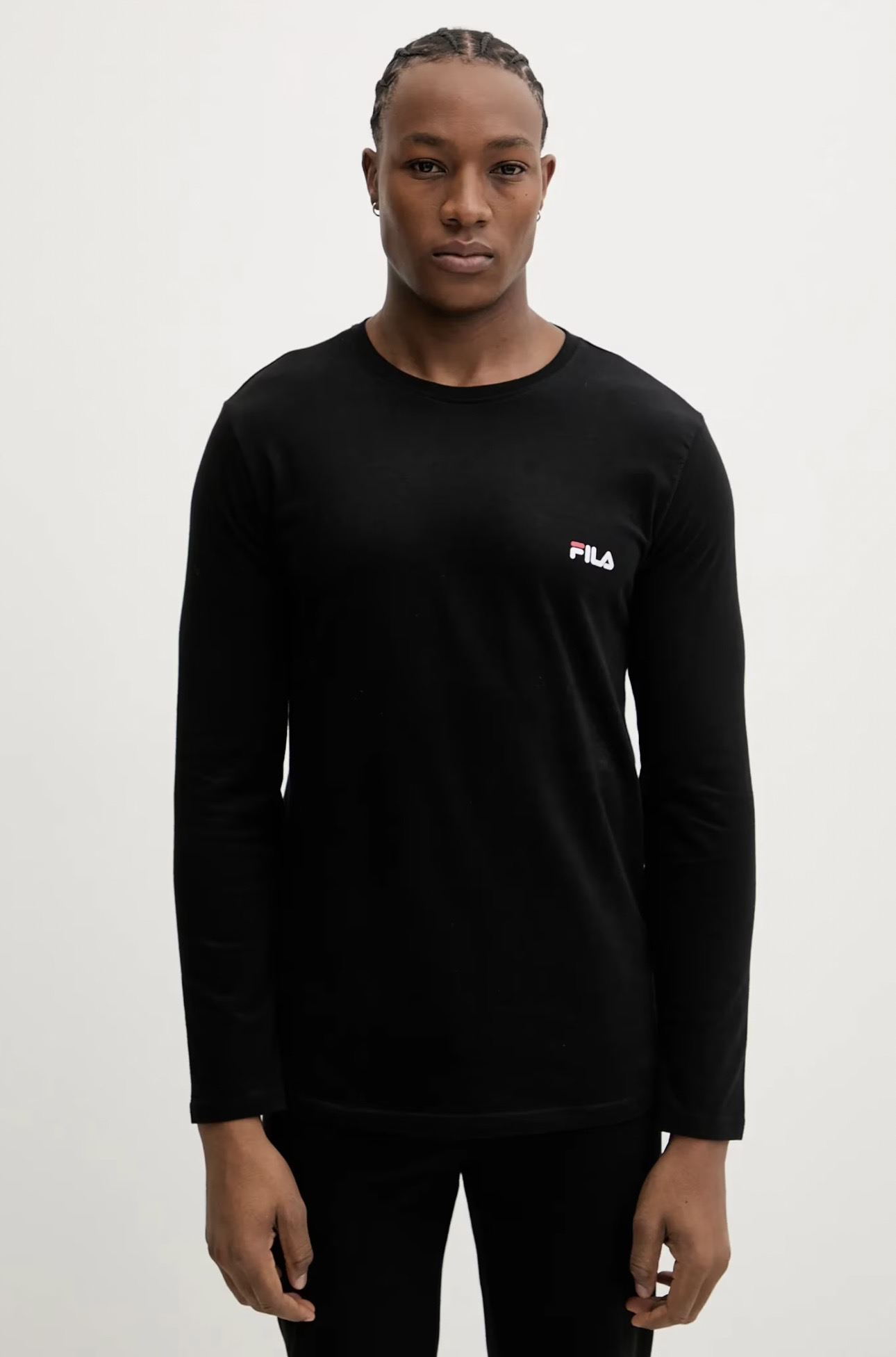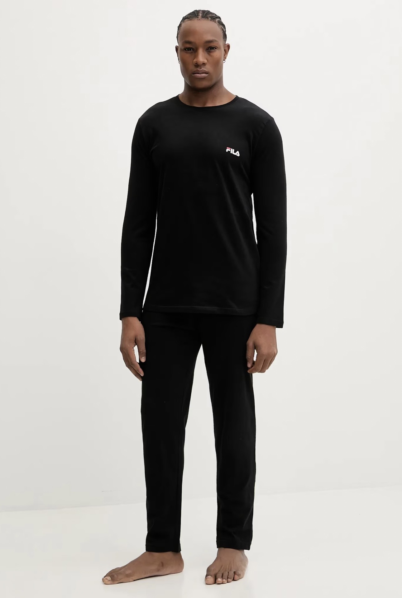 Ανδρική μαύρη Πυτζάμα FILA, από την σειρά COTTON STRETCH. Πυτζάμα με μακρύ μανίκι, στρογγυλή λαιμόκοψη και τύπωμα στο στήθος , κατασκευασμένη από υψηλής ποιότητας βαμβακερό ύφασμα, πολύ μαλακό και ελαστικό που προφέρει άψογη εφαρμογή και άνεση κινήσεων. Το παντελόνι διαθέτει μαλακό λάστιχο στην μέση και το τελείωμα και τσέπες, διακοσμημένο με το logo FILA αριστερά.