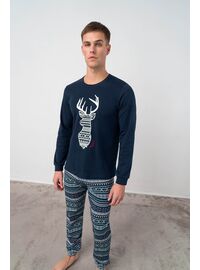 Ανδρική πυτζάμα Pink Label - Μπλε - Γεωμετρικό μοτίβο