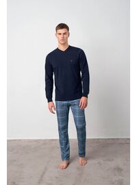 Ανδρική πυτζάμα Pink Label - Μπλε - καρό παντελόνι