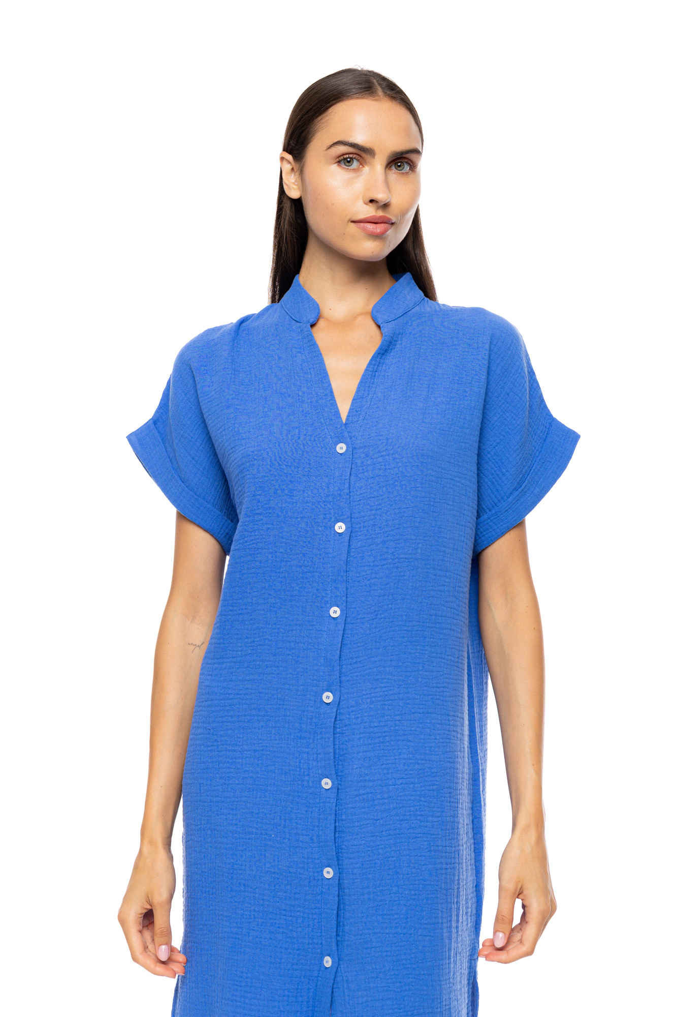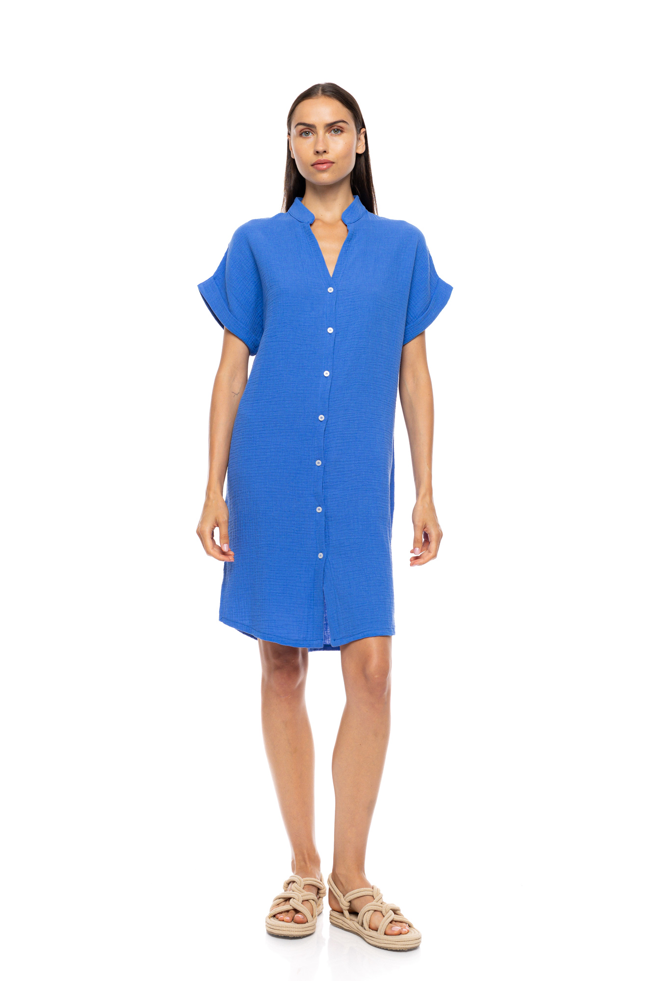 Γυναικείο Νυχτικό Pink Label - SUMMER NIGHTS - Indigo Blue - Σεμιζιέ - Κοντομάνικο - Cotton