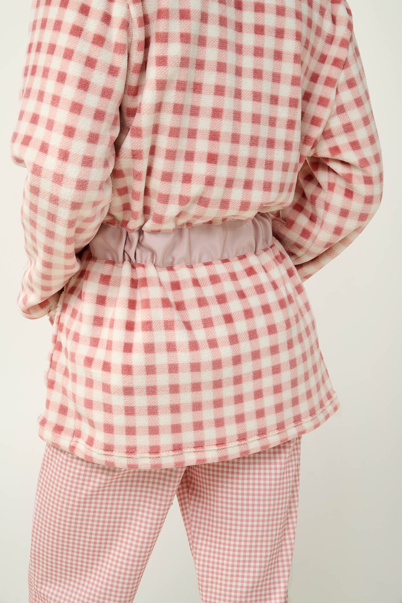 Αφεθείτε στην άνεση που χαρίζει αυτή η γυναικεία ρόμπα σε ροζ καρό μοτίβο. Σχεδιασμένη σε κλασική κρουαζέ γραμμή με απαλό πέτο, δένει μπροστά με κορδέλα για ρυθμιζόμενη εφαρμογή. Οι πλαϊνές τσέπες προσθέτουν πρακτικότητα, ιδανικές για να έχετε απαραίτητα αντικείμενα κοντά σας. Το απαλό fleece ύφασμα προσφέρει διαρκή απαλότητα και ζεστασιά που θα απολαύσετε χαλαρώνοντας στο σπίτι.