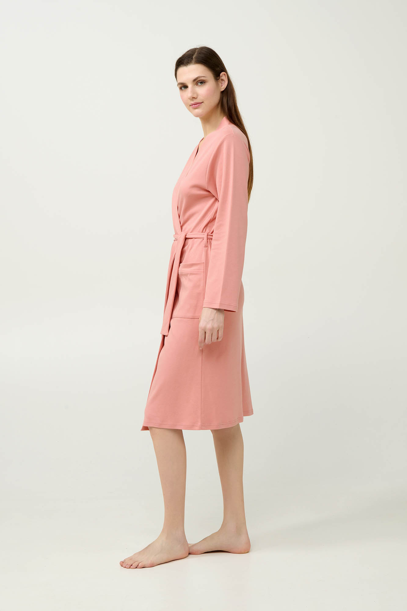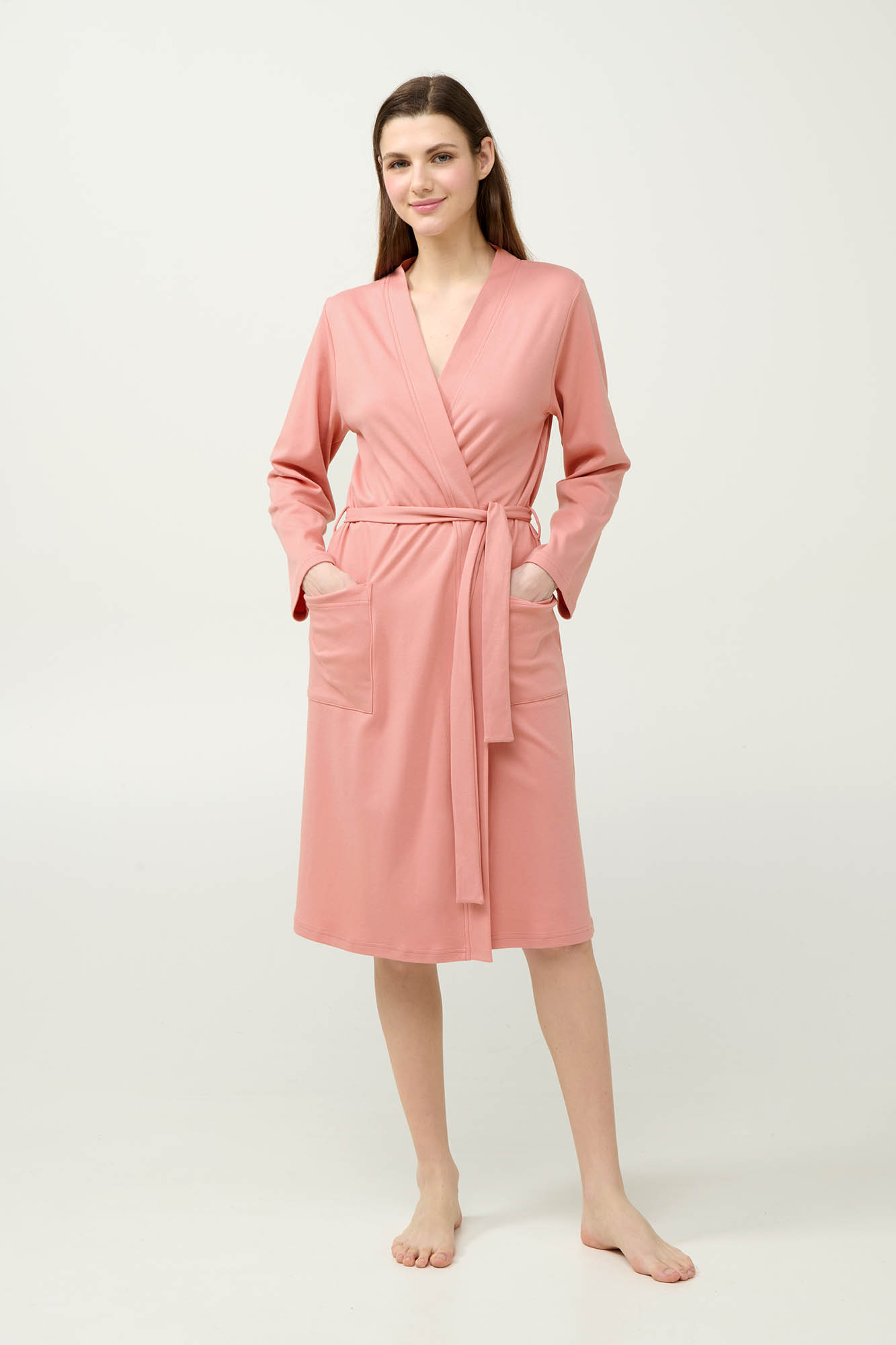 Ανανεώστε τη συλλογή σας με αυτή την κλασική γυναικεία ρόμπα, κατασκευασμένη από απαλό και διαπνέον 100% βαμβακερό interlock. Σχεδιασμένη σε διαχρονικό κρουαζέ σχέδιο με ζώνη που δένει στη μέση, προσφέρει άνετη και σταθερή εφαρμογή για την καθημερινή σας ευκολία. Οι πλαινές τσέπες προσθέτουν πρακτικότητα χωρίς να θυσιάζουν το στυλ, κάνοντάς την ιδανική για κάθε στιγμή της ημέρας.