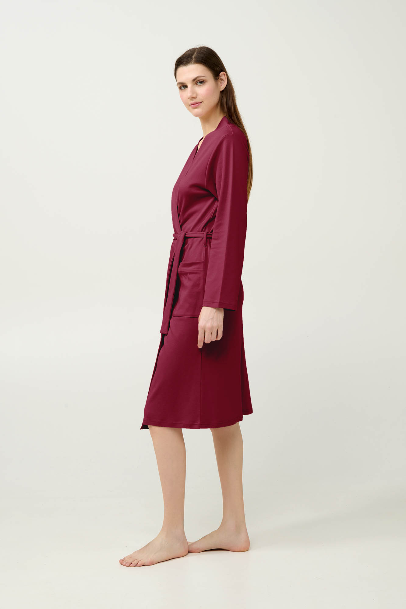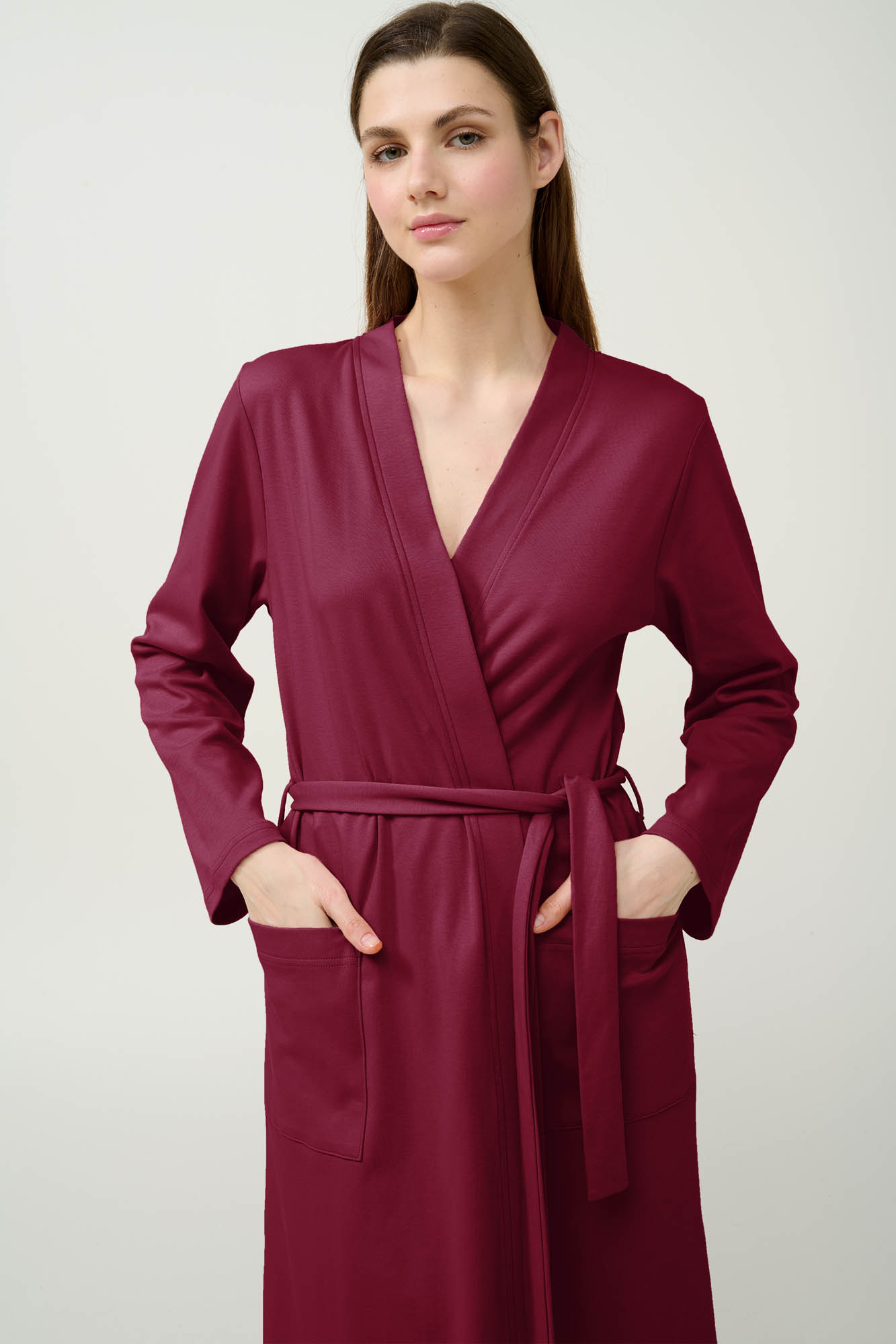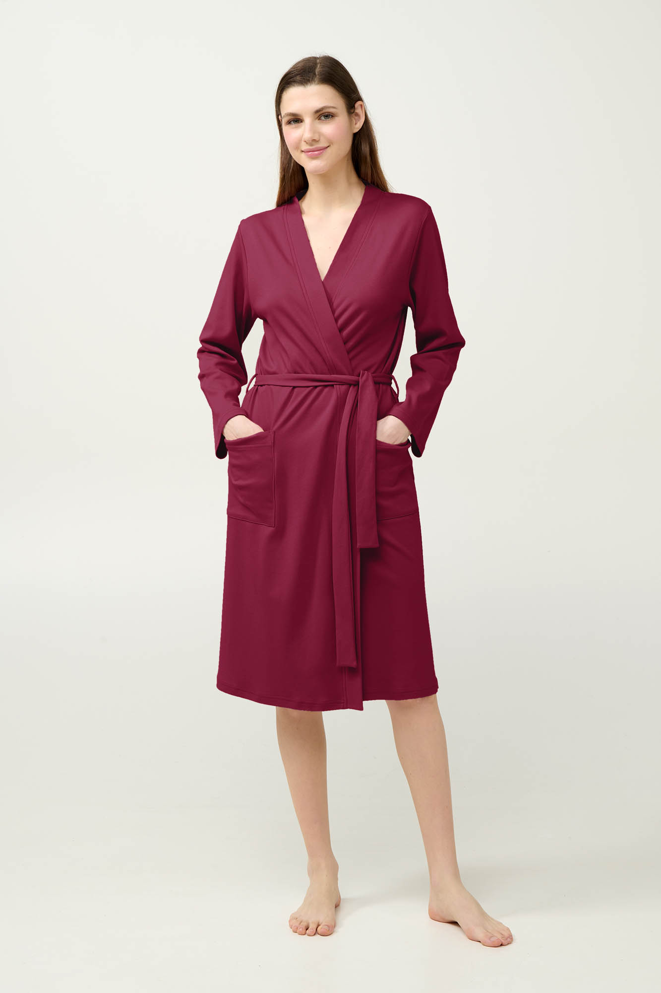 Ανανεώστε τη συλλογή σας με αυτή την κλασική γυναικεία ρόμπα, κατασκευασμένη από απαλό και διαπνέον 100% βαμβακερό interlock. Σχεδιασμένη σε διαχρονικό κρουαζέ σχέδιο με ζώνη που δένει στη μέση, προσφέρει άνετη και σταθερή εφαρμογή για την καθημερινή σας ευκολία. Οι πλαινές τσέπες προσθέτουν πρακτικότητα χωρίς να θυσιάζουν το στυλ, κάνοντάς την ιδανική για κάθε στιγμή της ημέρας.